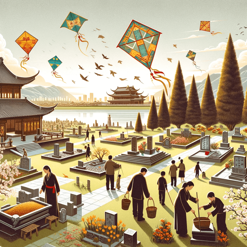 Święto Qingming, znane również jako Festiwal Czystości i Jasności, jest tradycyjnym chińskim świętem upamiętniającym zmarłych, obchodzonym wczesną wiosną, zazwyczaj 4 lub 5 kwietnia. To czas, kiedy rodziny odwiedzają groby swoich przodków, by zadbać o nie, sprzątając je i przynosząc ofiary, takie jak jedzenie, papierowe pieniądze i kwiaty. Qingming jest głęboko zakorzeniony w konfucjańskich wartościach szacunku i pamięci o przodkach, co odzwierciedla silne więzi rodzinne w chińskiej kulturze. Oprócz odwiedzania grobów ludzie często wychodzą na spacery po wsi, uprawiają wiosenne prace w ogrodach lub latają latawcami, co nadaje temu świętu radosny i optymistyczny charakter.
