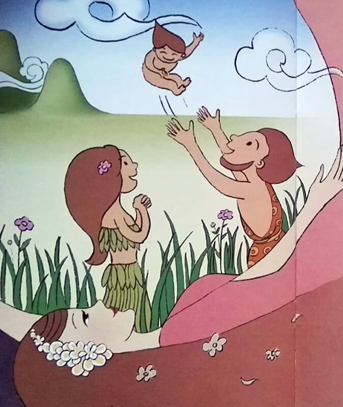 Nüwa miała zręcznie ręce, więc bardzo szybko stworzyła figurka łudząco podobna do autorki była już gotowa. Kiedy postawiła ją na ziemi, ku jej zdziwieniu, dzieło ożyło i zaczęło wołać: Mamo! Mamo! Zaczęło tańczyć wokół niej. Nüwa poczuła, że uczucie samotności powoli mija.