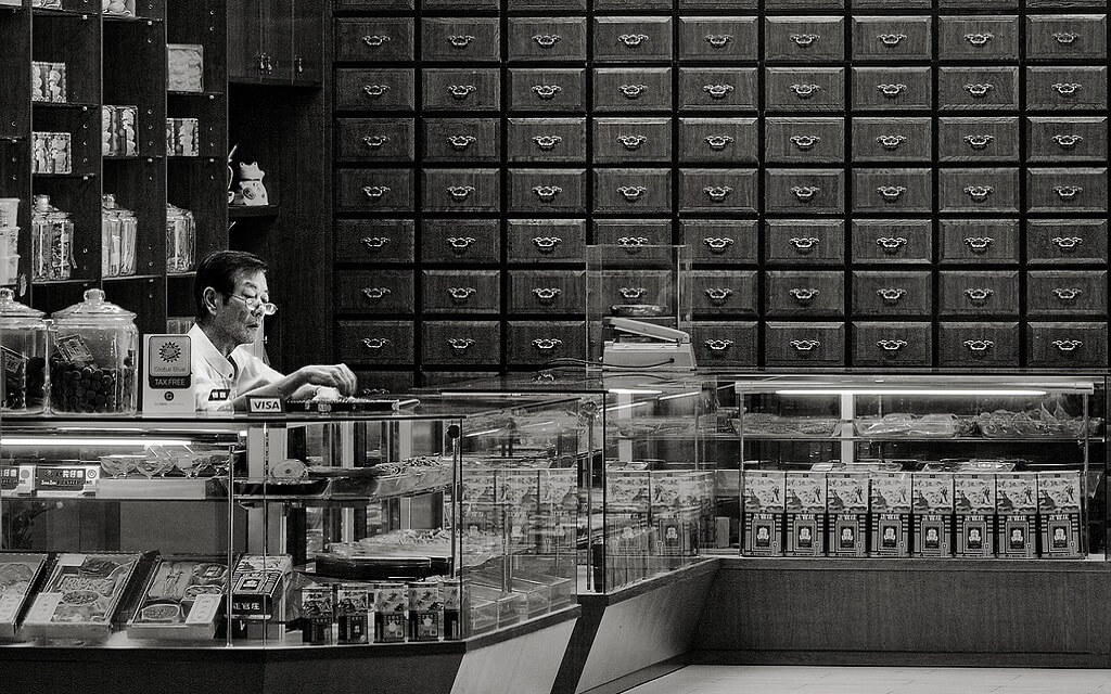 Tradycyjna chińska apteka to miejsce, w którym obecna jest farmakopea chińska, czyli odmiany ziół i roślin leczniczych.